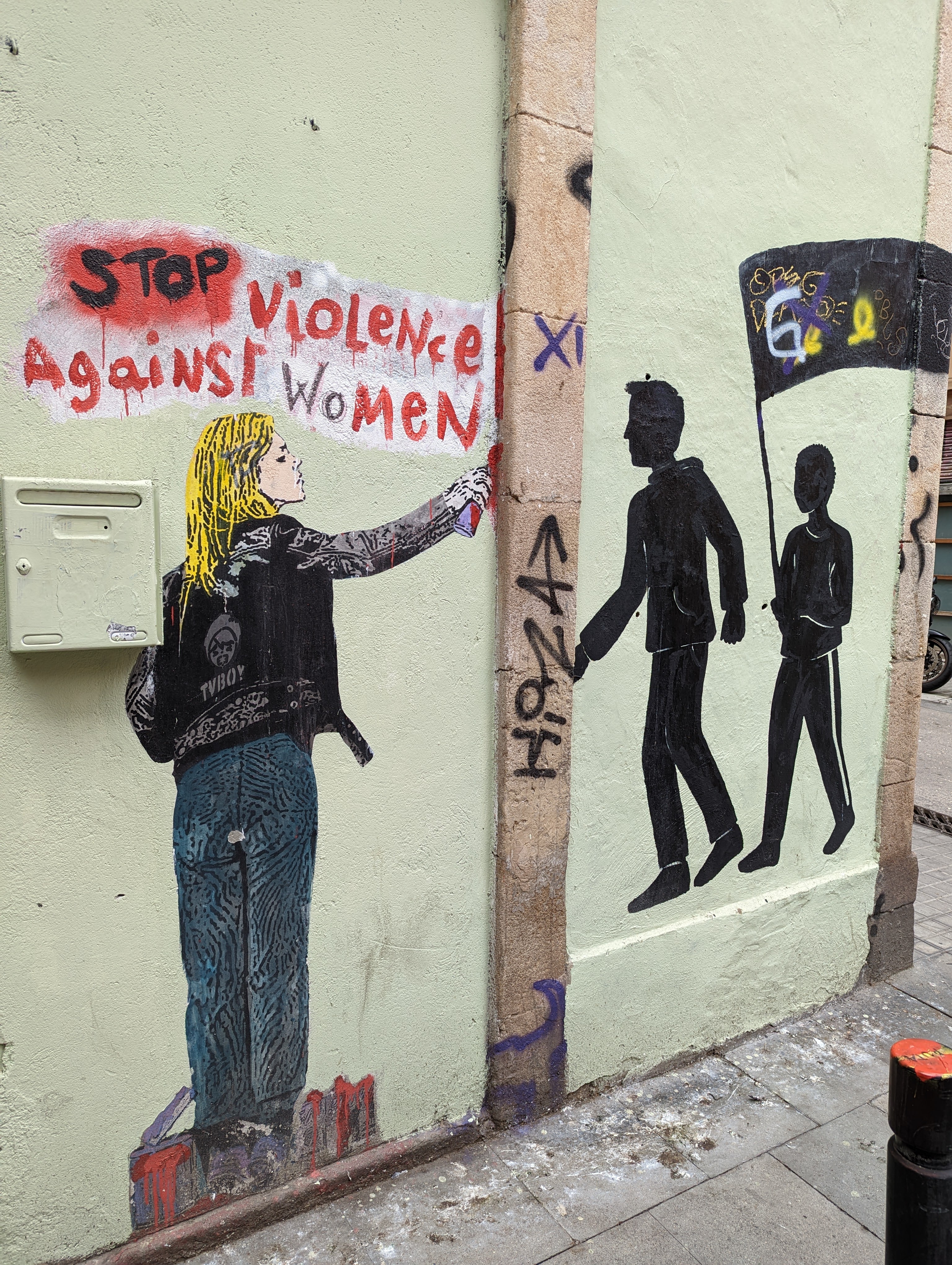 Before the group's departure, Tom and I took a walk around our neighborhood near the intersection of Diagonal and Passeig de Gracia. If you look at an aerial view of Barcelona, the neighborhoods south of Avenida Diagonal are an impressively symmetric product of excellent city design and planning. North of Diagonal, the streets and blocks get a little more confused. During our week of walking around the city, we saw a lot of "street art" that ranged from beautiful and creative works to plain old graffiti (one might even say vandalism). One recurring them was the words "Tourists go home" painted on doors and roller curtains, sometime quite nicely done and other times not so much. From my personal perception, we only saw the "Tourist go home" message north of Av. Diagonal, which is where we were staying. Maybe that's observer bias or maybe our neighborhood was a bit more working class and the massive tourist population in Barcelona puts an unfair burden on the locals with the price of food, the availability of housing, and the constant presence of "strangers" wandering the streets taking pictures of everything.